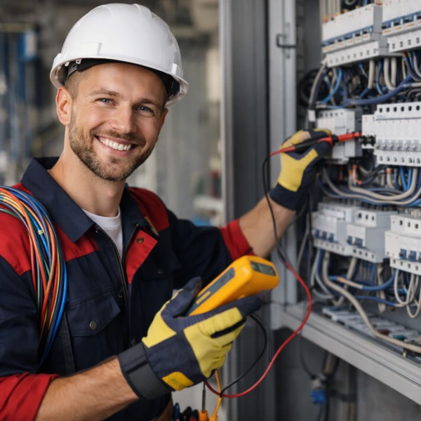 Montaż instalacji elektrycznych w obiektach budowlanych, naprawa instalacji oraz praca na podstawie rysunków technicznych.